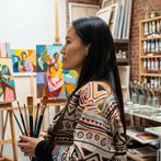 Participation in a curated lifestyle exhibition and art market held at the Aru Ana Wellness Studio in Almaty. The event was dedicated to celebrating creativity, women's empowerment, and contemporary art. I presented a collection of original mixed-media artworks, featuring high-texture acrylics and symbolic figurative imagery on tondo canvases. This exhibition allowed for a direct dialogue with collectors and art enthusiasts in a sophisticated, modern environment.