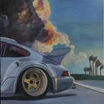 Working in oil and mixed media, Vangar captures the sculptural quality of automotive design — the play of light on polished surfaces, the curvature of bodywork, and the tension between movement and stillness. Cars are approached not as functional objects, but as cultural symbols and visual compositions.