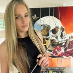 Through recurring motifs - most notably the skull - she constructs visual narratives that examine love, decay, desire, and rebirth. Each composition functions as a symbolic language, where elements such as fruit, animals, and objects act as carriers of meaning rather than decoration.