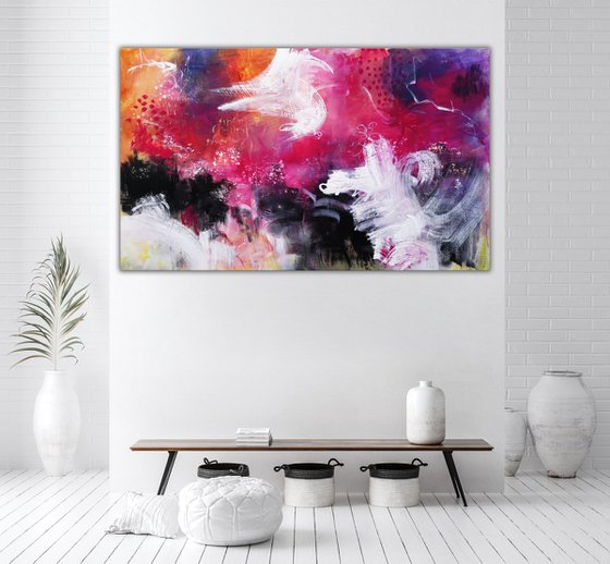 #extra_large #gestural #bright_abstract #colorful #light_colors #unique #one_of_a_kind #movement #large_abstract #art_for_large_wall #livingroom_art #art_for_office #red_painting #pink #magenta