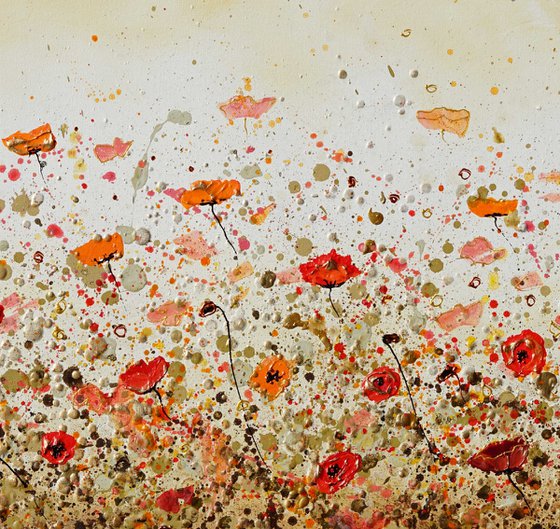 Painted on 3 slim edge canvas. The sides of the canvas are painted. The painting remains on a wooden framed canvas with hooks and wire so it will be ready to hang from box to wall. No need for framing