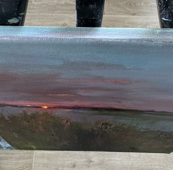 The use of oil paints brings depth and rich texture, making the scene come alive with a quiet pulse of light. This is more than a landscape — it is a state of mind, a pause for gratitude and reflection.