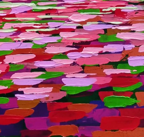 An original artwork, one of a kind, this painting has been created with high quality acrylic paints on deep edged canvas. I begin with observation of the place making notes and taking photographs to work from in the studio. From these beginnings I work intuitively, painting some base layers with a brush and then impasto techniques layer on layer applied with a palette knife. Harnessing optical mixing techniques employed by the impressionists and some of the methods of the old masters such as scumbling and glazing. I continue working until the painting reaches a natural conclusion. The result is a contemporary painting, which lies somewhere between abstraction and realism. The painting continues round the sides, a frame is not needed and it is ready to hang.