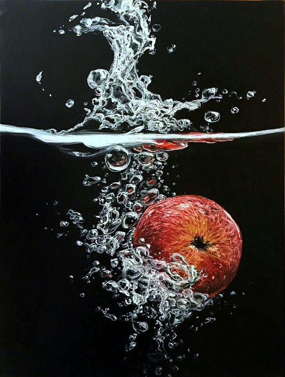 #red #realism #still life #green #apples #impressionism #underwater #apple #photorealism #water drops #hyperrealism #testy #fruit underwater