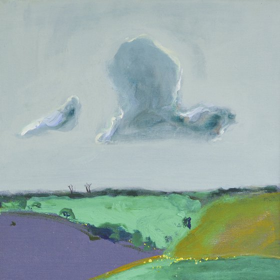 #meadow #purple #white #green #minimalism #cloud #field #ukraine #april #minimalistic #minimalistic abstract #nekraha