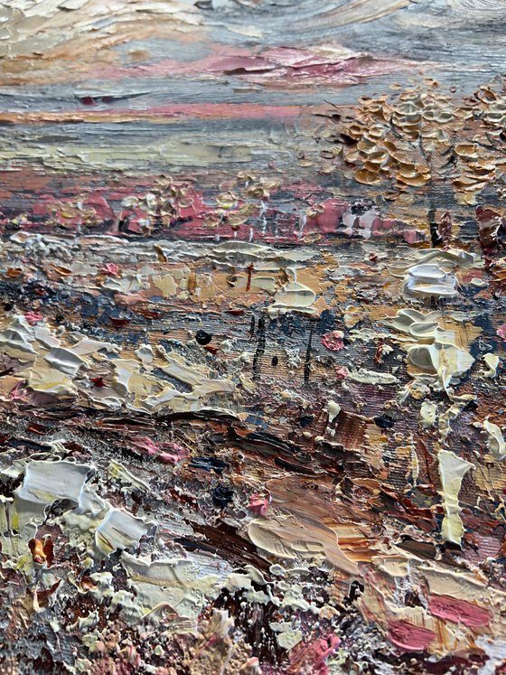 I created this piece to capture the emotional moment when the sky awakens, when clouds shift and colors stretch across the horizon like a dream unfolding.