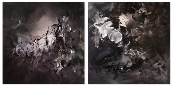 Diptych art: each painting measures 40x40 inches or 100x100cm, total size is 40x80 inches or 100x200cm.