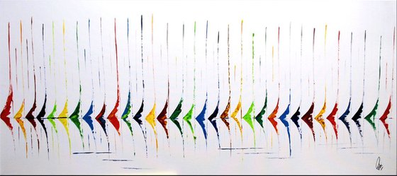 This abstract sailboat painting is made in rainbow colors on a white background. A matte finish conserves the beauty of your piece.