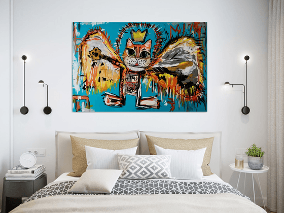 Version of painting with a ginger cat by Jean-Michel Basquiat, fallen Angel