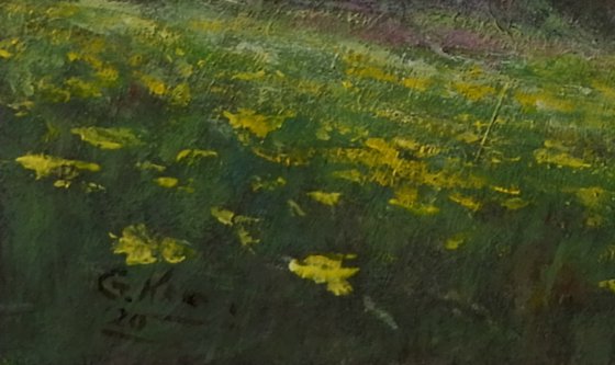 Sunmmer fields Small painting 24-18 cm. acrylic on panel.