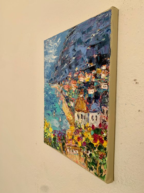 Positano Amalfi Landscape Impasto Oil Painting On Canvas Original Signed Blooming Coast Wall Art Decor