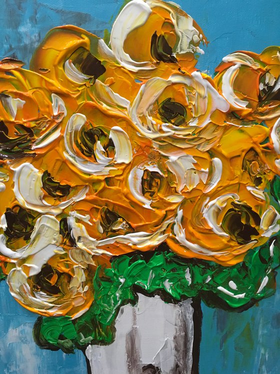 BOUQUET OF Yellow Roses #8 palette knife Original Acrylic painting office home decor gift (2020) Acrylic painting