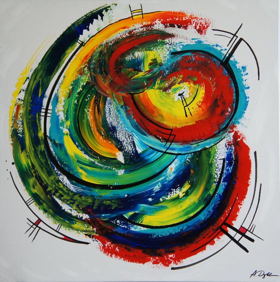 This painting (and others) in acrylic colors comes out of a phase where I experimented with a new style, using circular motions to apply the paint onto the canvas. I still like this very dynamic style - I hope you do too._x000D_