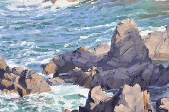 Brittany, the eternal muse of artists, continues to inspire me with its wild and untamed beauty. The interdependence of the elements is fascinating. The water, rocks, and light interact and challenge each other to form a scene that is both peaceful and powerful. There is a fluid dialogue between stillness and movement, between raw presence and the unleashing of elements.