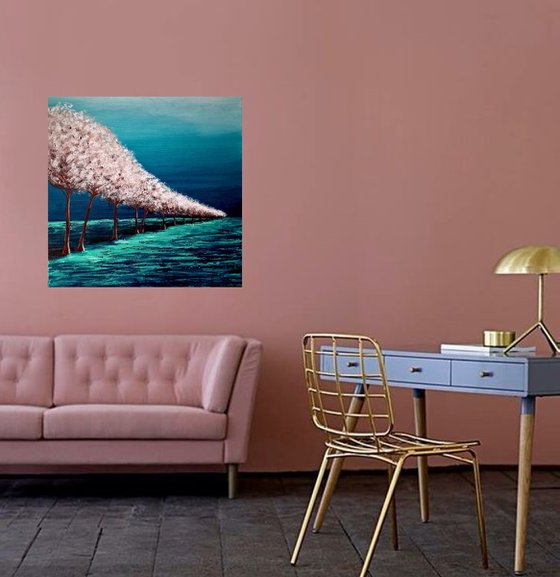 THE STUNNING, UNIQUE EFFECTS AND WONDERFUL COLORS CANNOT BE ADEQUATELY CAPTURED IN PHOTOS. The visual quality of this painting is stunning in both indoor and natural light.