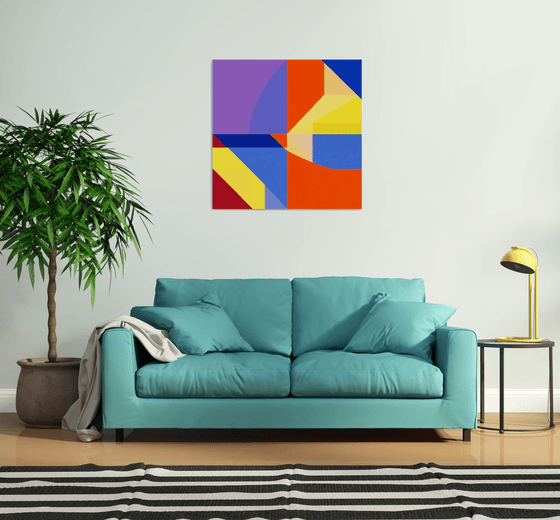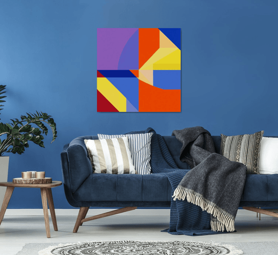 "Chromatic Intersection" is a limited edition giclée print on canvas that explores the visual dynamic created by the meeting of angular geometric shapes and a vibrant color palette. As an artist based in Palermo, Sicily, Italy, I continue my investigation into the relationships between space, form, and color, offering a composition that stimulates perception and intellect.