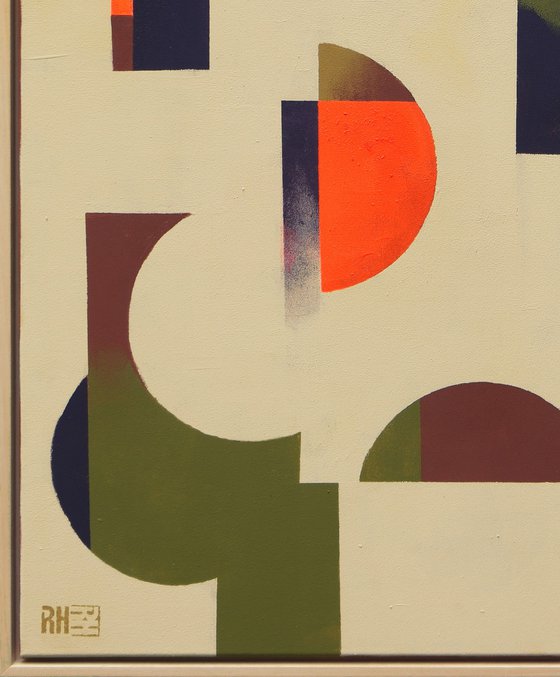 This new painting from Ronald Hunter’s Circle in Circle Collection features overlapping shapes and flowing transitions. Round and angular forms merge seamlessly, creating a sense of movement within movement. Layered acrylics and neon paint elements give it depth and balance, making it a subtle yet vibrant addition to any interior.