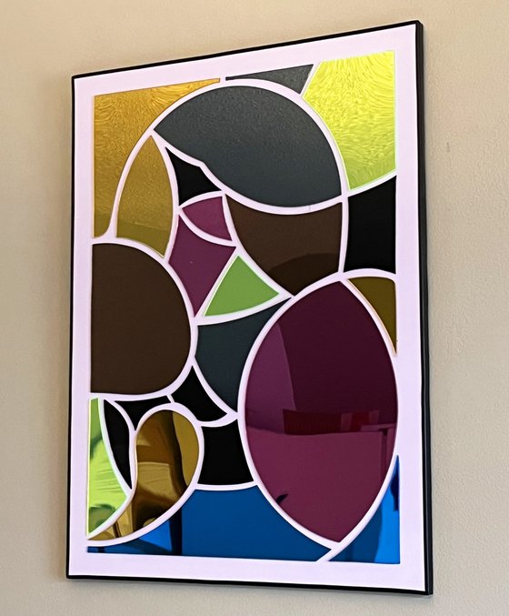 This artwork is special because it invites viewers to find their own sense of balance within its shapes, encouraging contemplation on how different elements can coalesce to create a cohesive whole. The mirrored and matte surfaces create dynamic reflections and depths, engaging the viewer’s perception and making the piece an evolving experience with each glance.