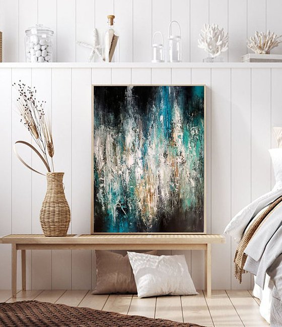 In this painting, I've channeled the chaotic beauty of urban life through the interplay of murky darkness and vibrant light streaks. Using acrylic, black, and plaster, I crafted a textured surface that captures the essence of a city's soul—both its rough edges and its moments of clarity. This piece is an emotional landscape, meant to evoke the constant flux and dynamic energy of living in a bustling metropolis. It will bring a sense of depth and movement into your space, resonating with the vitality of city life.