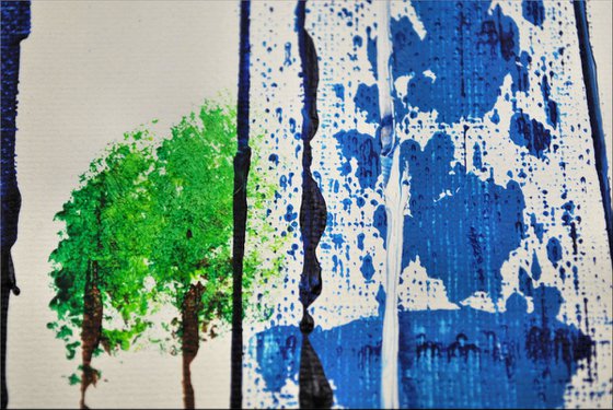 The painting is made in colourfull paints on a white and light grey background. A matte finish conserves the beauty of your art.