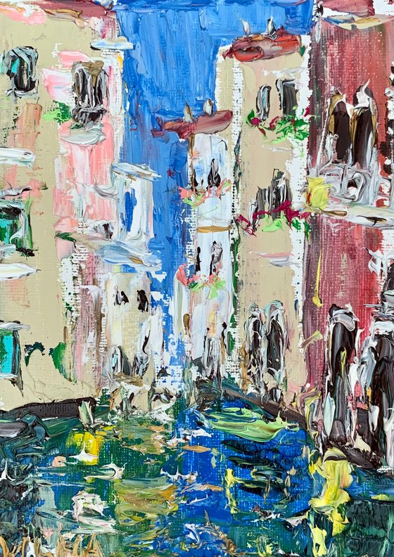 Venice Cityscape Impasto Oil Painting On Canvas Board Original Signed Colorful Houses Wall Art Decor