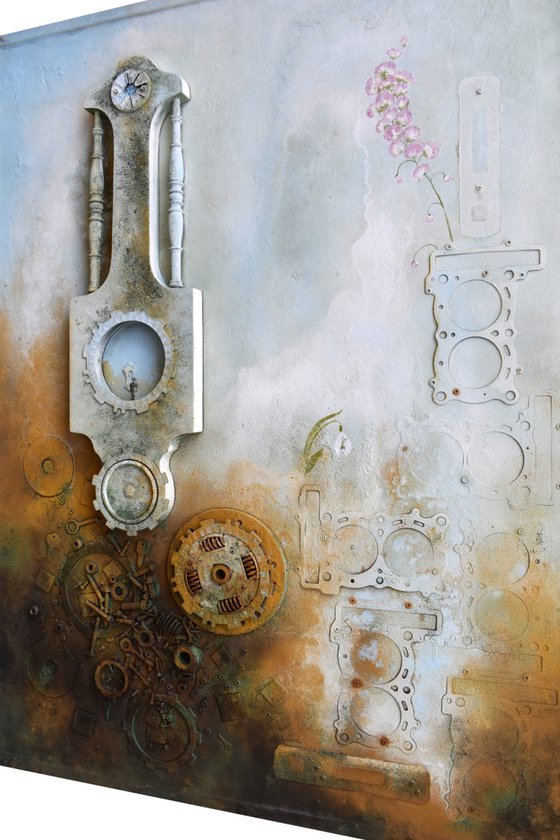 In this series of works "the debris" left by the passage of man speak to us. They are poetic stories. In some works these debris are rust grooves or accumulations of scrap, in others they are objects or strips of fabric and Milena dialogues with these, reconstructing a story.