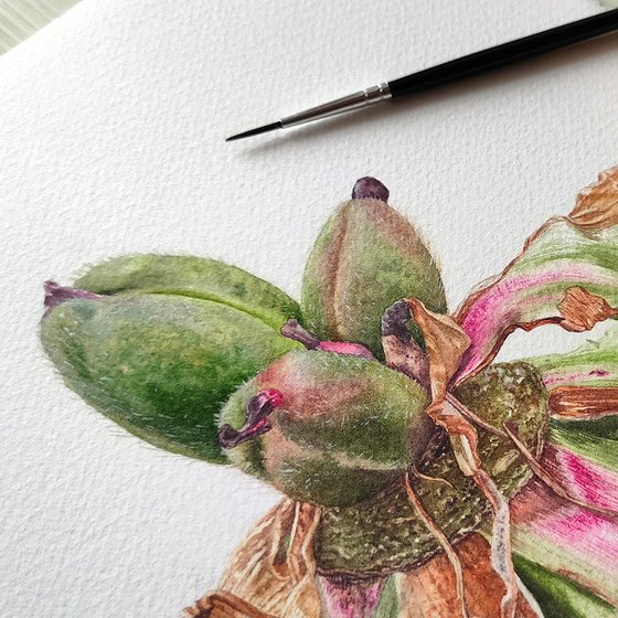 Dried Peony — watercolor painting on white background. Peonies continue to be beautiful flowers even when dry.