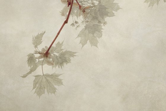 Budding Maple leaves captured with a full spectrum converted camera and 590nm infrared filter have an ethereal glow. In neutral tones of beiges and browns and layered with textures.