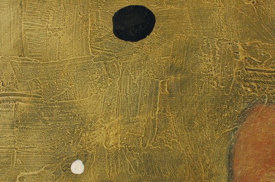This work is a large acrylic abstraction, painted over a stretched textured canvas. The edges are painted dark color and it's ready to hang. It measures 130 x 140 x 2 cm. The painting is lacquered with protective varnish.