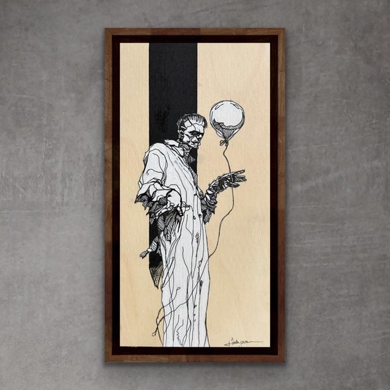 pen and ink on wood panel