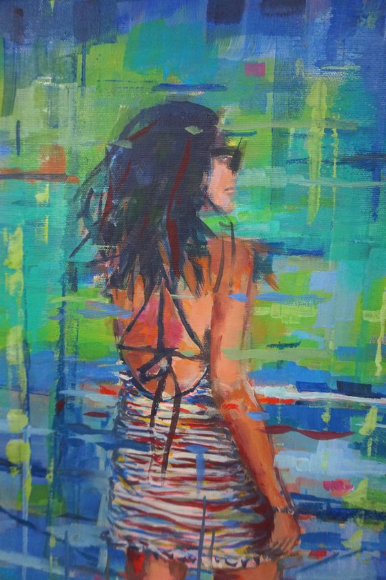 I made this work based on a photo taken by me in a coastal town in Spain to my models, two lovely girls.