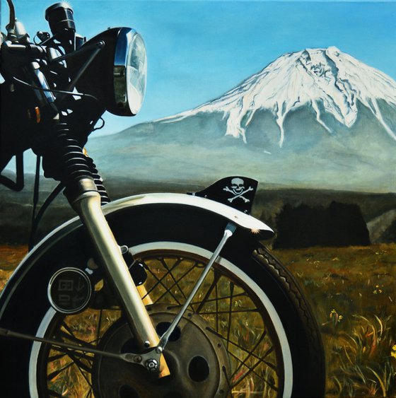 In Fuji, Roman Sedlák captures the serene majesty of Japan’s iconic mountain with a unique blend of realism and cinematic stillness. A solitary vintage Toyota cruises down an empty road toward the distant peak, its form bathed in soft light and long shadows. The scene feels both timeless and precise, like a frame from an old film—evoking nostalgia, wanderlust, and quiet contemplation.
