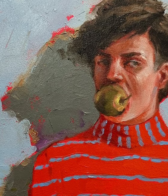 "Apple" Tales is a collection inspired by the rich and varied symbolism of the apple. Across cultures and languages, this iconic fruit appears in myths, proverbs, and idioms—sometimes standing for love, wisdom, or vitality, other times symbolizing temptation, loss, or discord. In each painting, a central figure engages with an apple, either as a direct nod to a well-known phrase or in a more playful, emotionally expressive way. Some works carry a touch of humor, others lean into introspection—but all invite viewers to rediscover the hidden meanings behind this everyday fruit.