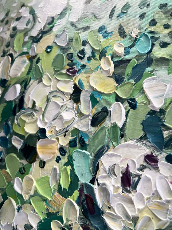 The textured brushstrokes in soft green tones create a calming and refreshing ambiance, making it an ideal choice for anyone seeking to bring serenity into their home.
