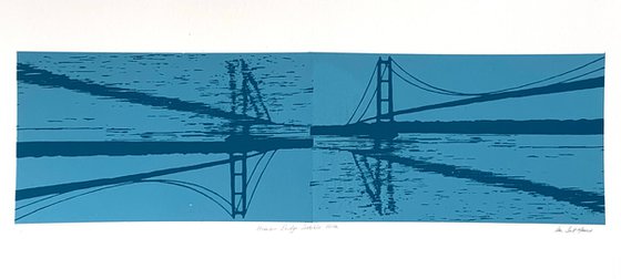 A view of the Humber Bridge near Hull UK double printed and flipped by Ian Scott Massie