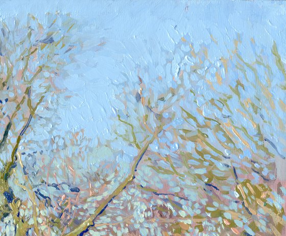 One of the on-stage sketches I paint in early spring. This is a great time of the year when everything wakes up after the winter. The snow has just melted, and not yet the leaves.