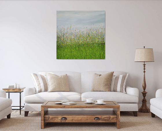 Using my signature stringy grass technique I have created a bountiful vibrant meadow with an abstract twist.