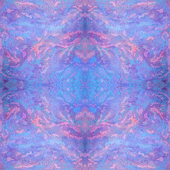 This captivating limited edition print offers a kaleidoscopic twist on an original painting inspired by the enchanting hues of flowering jacaranda trees. Comprised of hundreds of meticulously arranged dots and circles in various sizes, this colourful abstract artwork features a mesmerizing blend of bluish-purple tones. Perfect for adding a touch of elegance and serenity to any space.
