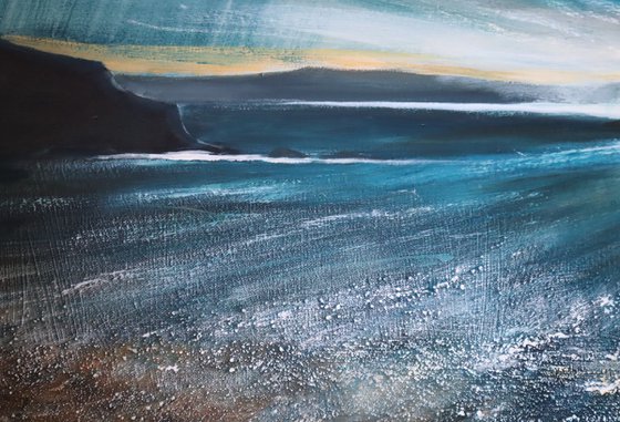 I have used some texture medium in the foreground to help create a rugged atmosphere.