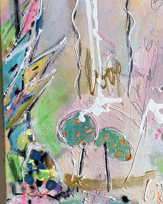Life loves you No.26 is a 38 cm W x 46 cm x 2 cm deep mixed media painting.