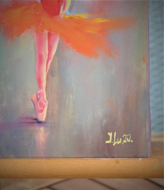 Crafted with fervent strokes, my oil painting captures a dancer's passionate poise. It's an emotional whirlwind—her fiery tutu a burst of vibrant energy against the tranquil backdrop, embodying grace and determination. This piece is an ode to the beauty of the human spirit and dance, inviting an electrifying essence into any space.