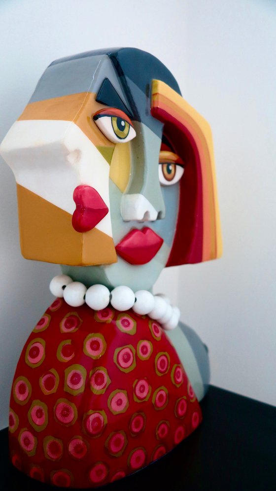 The bold lines and the bright colours on this piece celebrates women's achievement, beauty and sensuality. Through the grey background colour I want to raise awareness about discrimination and inequality in our modern society that still leaving us feeling greyish.