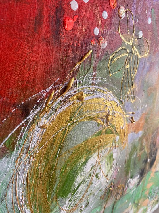 This expressive artwork is painted on high quality canvas. It is ready to hang, edges are painted. It is varnished ( Lascaux ) for protection against dust and UV light. The signature is on the front. You will receive a signed certificate of authenticity. You will love the energy of this expressive painting in a magic colour composition.