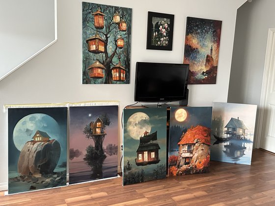 this is one of a series of paintings painted in the first year of my immigration. the obsessive thought of a safe and kind refuge stirred my mind before departure and still. in the paintings of this series are my nightdress and impatience of a cozy home of my own.