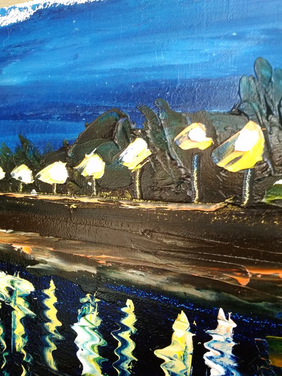 It is 100% original unique artwork. The painting made by quality oil paints on quality panel. The painting was created by applying a lot of unique brush strokes which impossible repeat again. The rotation of brush strokes different paint colors create a unique look and depth of this work