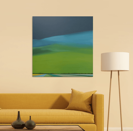 "The landscapes of Van Nieuwenhuijzen are extensive, born from an intense experience of the openness of the Zeeland area. An undertone of mysticism is unmistakable. As if caught in line and color movement continues in the invisible behind the horizon. The accentuated line is both the boundary and the window. The subtle differences in rhythm and nuances reflect a range of emotions." (C. Bos)