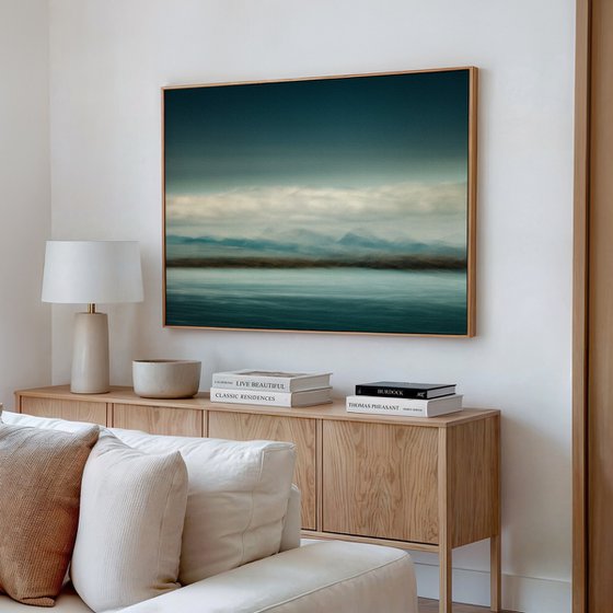 From the Isle of Skye looking towards the mainland, clouds lie on distant hills, like waves on the water, they float soft and gentle.