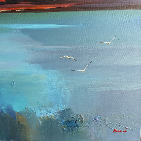 In this vivid acrylic painting, I sought to encapsulate the ephemeral beauty of twilight skies mirrored over a serene landscape. My brush strokes layer rich blues and reflective silvers against warm, fiery hues that streak the horizon, evoking a sense of both peace and passion. This artwork is a celebration of nature's own canvas, intended to bring a burst of color and inspiration to your home, enlivening any room with an impressionistic reflection of day's end.