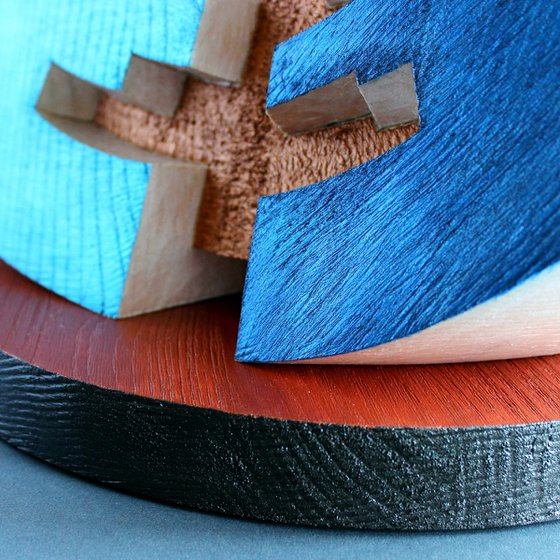 This original ash and spruce wood sculpture is one of the latest artworks of the skillful Bulgarian contemporary sculptor Nikolay Martinov. In creating this sculpture, he finds inspiration in the dynamic interplay between land and sea. The jagged, rising forms symbolize mountainous landscapes, contrasting starkly with the serene, flowing essence of ocean waves, represented in calming blue hues. This exquisite woodcarving piece is a meditation on nature's opposing forces and their beautiful, eternal dance. It will bring a sense of tranquil energy and a touch of nature's grandeur to any space.