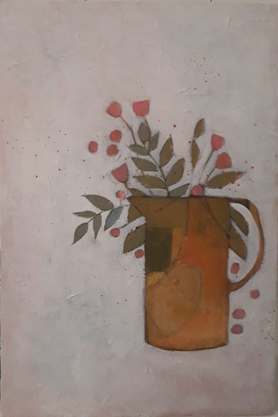 It has been created on a box canvas and has interesting marks and textures. the sides are painted white so no need for framing. It has also been signed on the side and fitted with chord so it is all ready to hang.